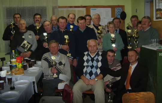 Na zdjęciu: Hodowcy gołębi pocztowych z sekcji Szczekociny z pucharami na podsumowanie sezonu lotowego w 2010.