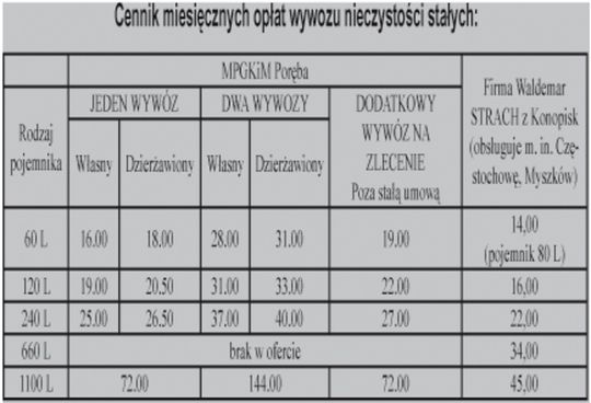 (Poręba) Uprawnieniem Rady Gminy jest uchwalanie „górnych stawek za usługi w zakresie odbierania odpadów komunalnych oraz opróżniania zbiorników bezodpływowych i transportu nieczystości ciekłych”. O uchwale gminy Poręba pisaliśmy niedawno, ale rzeczywiście w tekście Kuriera Zawierciańskiego zabrakło informacji, że przestawione stawki, to stawki maksymalne, a przedsiębiorstwa mogą stosować ceny niższe. Nasz błąd, przepraszamy. Porównaliśmy więc stawki gminnego MPGKiM Poręba z konkurencją. I wniosek jest prosty: mieszkańcy Poręby sporo przepłacają!