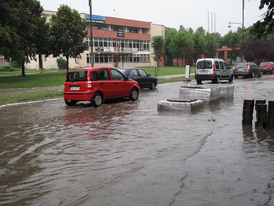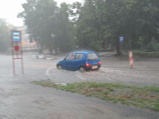 (Zawiercie) W środę (20 lipca) w wyniku gwałtownych opadów deszczu Zawiercie wyglądało jak ogromna kałuża. Wiele ulic i przejść podziemnych znalazło się pod wodą. Także remontowana właśnie ulica Leśna. Kierowcy musieli jechać po chodniku, żeby nie zniszczyć swoich samochodów. Z podobnymi utrudnieniami spotkali się kierowcy przejeżdżający m.in. ul. 11 Listopada i Kościuszki w Zawierciu. Na ul. Senatorskiej natomiast autobus utknął w błocie, kiedy próbował ominąć zalaną wodą ulicę. Ruch został tam zablokowany na kilka godzin. (JB)