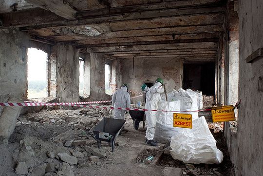 Podczas tych prac zmagano się nie tylko z typowymi odpadami azbestowo – cementowymi. Tylko w trakcie rozbiórki samych dachów budynków usunięto 582 ton papy. Z terenu byłych zakładów usunięto też 21 ton wody skażonej cyjankami. W trakcie prac rozbiórkowych na terenie zakładu odzyskano również około 14 ton złomu.