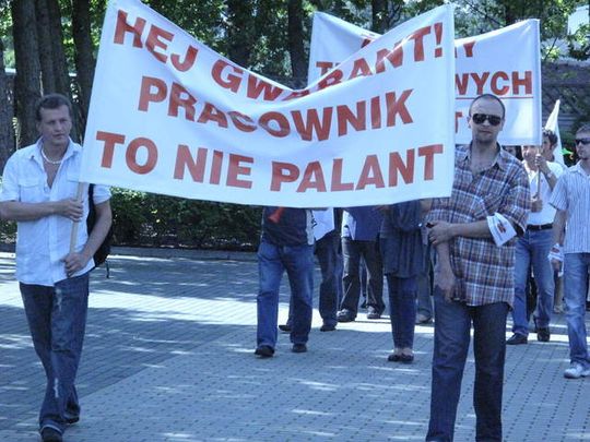 – Hej Gwarant! Pracownik to nie palant! Bez bajerów, tu nie ma frajerów! Terminowa wyplata! Zero bata! – skandował tłum przy dźwiękach syren.
