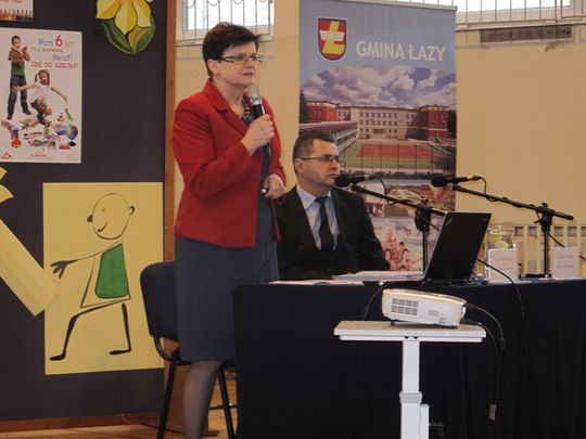 - Gmina Łazy, to miejscowość szesnastotysięczna, mamy osiem szkół. Od 2007 roku praktycznie wszystkie zostały wyremontowane. Koszt tych inwestycji to ponad 6 milionów złotych. Jeśli do tego dodamy budowę krytej pływalni to będzie to już kwota w sumie ponad 20 milionów złotych wydana na to, by dzieci mogły się rozwijać. Znajdujemy się w szkole, która rzeczywiście odniosła sukces. Nauczyciele, dyrekcja, rodzice wykazali wobec siebie duże zaufanie, jeśli chodzi o posłanie 6-latków do pierwszej klasy. W 2009 roku stworzyliśmy plan działania, który zakładał, że będziemy wspólnie dyskutować na temat sześciolatków w szkołach. (…) W szkole w Chruszczobrodzie rodzice obdarzyli nauczycieli zaufaniem. Na terenie gminy około 30 procent 6-latków uczęszcza do pierwszej klasy – informował burmistrz Łaz Maciej Kaczyński. W dalszej części samorządowiec sugerował, że przez to, że poszedł do szkoły jako 7-latek (a nie jako 6-latek) o mało nie wylądował w armii.