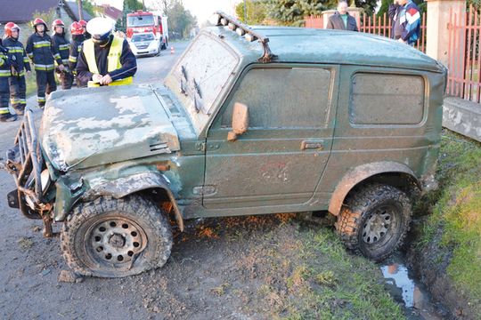 (Niegowonice) 26 października około 15.30 w Niegowonicach (gmina Łazy) z niewyjaśnionych przyczyn na prostym odcinku drogi, kierowca terenówki stracił panowanie nad pojazdem i wpadł do rowu.