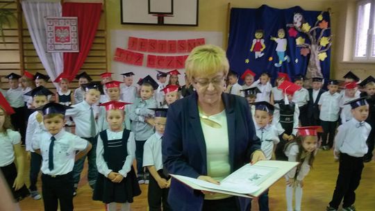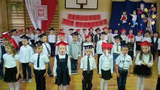 Punktualnie o godzinie 9 30 na sali gimnastycznej pierwszaki rozpoczęły swoje wielkie święto. Akademia miała bardzo uroczysty charakter. Pasowanie na ucznia jest tylko raz w życiu, dlatego dla dzieci i ich pedagogów było to tak ważne święto. Sześcio i siedmiolatki pięknie poprowadziły szkolną akademię. Były piosenki i wspólne recytowanie specjalnie na tą okazję przygotowanych wierszy. Młodzi uczniowie, ubrani w odświętne stroje z biretami na głowach dumnie ślubowali przed dyrektorem i zaproszonymi gośćmi. Rodzice nie kryli łez wzruszenia. Przybyli na uroczystość władze powiatu zawierciańskiego w osobie Przewodniczącego Rady Jarosława Kleszczewskiego oraz władze gminy, które reprezentował Wójt Stefan Pantak wręczyły najmłodszym uczniom okolicznościowe prezenty.