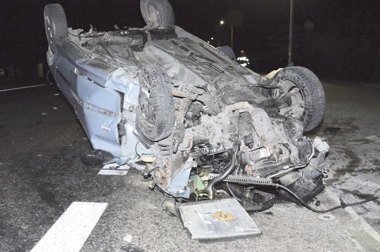 Roztrzaskany pojazd dachował, na szczęście 29-letni kierowca wyszedł z wraku bez obrażeń. Jego wynik, to ponad 1,6 promila alkoholu w organizmie.