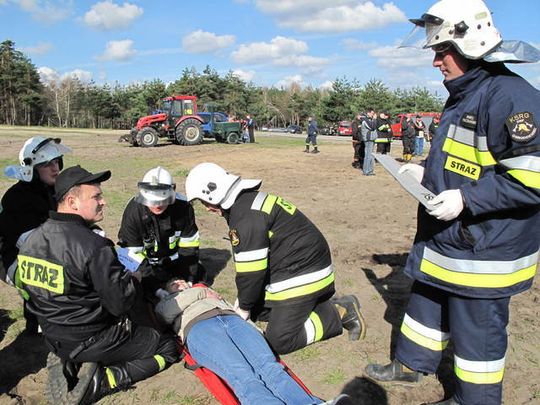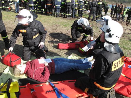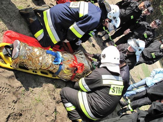- Nasza „poszkodowana” miała ranę ciętą głowy i otwarte złamanie prawej nogi powyżej kolana. Główne działania polegały na zrobieniu pozorantce opatrunku na głowę przy użyciu bandaża elastycznego i na usztywnieniu jej nogi szynami Kramera. Na szyję założyliśmy specjalny kołnierz usztywniający. Poszkodowaną położyliśmy na deskę i przykryliśmy ją folią izolacyjną. Uważam, że umiejętność udzielania pomocy ofiarom wypadków przydaje się nie tylko w pracy strażaka – nigdy nie wiemy kiedy i komu będziemy musieli udzielić pierwszej pomocy – mówi druh Szymon Kot z OSP Pilica.