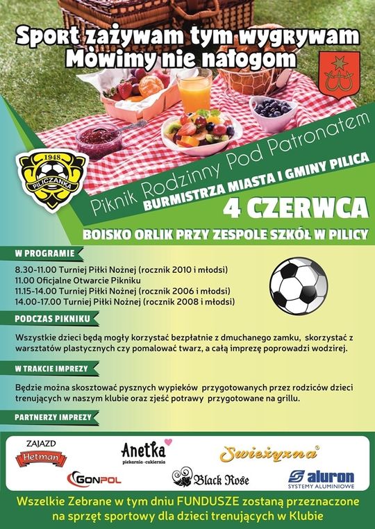 W najbliższą niedzielę na boisku przy Zespole Szkół w Pilicy odbędzie się piknik rodzinny promujący sport i zdrowy styl życia. Szczegóły na plakacie