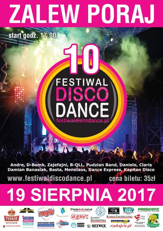 W sobotę 19 sierpnia nad zalewem w Poraju odbędzie się 10 edycja Festiwalu DISCO DANCE ZALEW PORAJ 2017. Na scenie zlokalizowanej na OSWiR w Jastrzębiu zagrają m.in.: Andre, Basta, Pudzian Band, D-Bomb, Damian Banasiak, Claris, Kapitan Disco, Menelaos, Zajefajni, B-QLL oraz Dance Express. Początek imprezy o godzinie 17.00. "Gazeta Myszkowska" oraz "Kurier Zawierciański" objęły patronat medialny nad imprezą. W papierowych wersjach naszej gazety dostępnej w piątki będą konkursy, w których wygrać będzie można podwójne bilety na Festiwal Disco Dance Zalew Poraj.