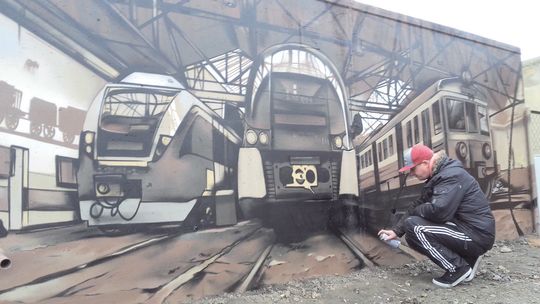 (Łazy) Na ścianach garaży w rejonie ul. Wyzwolenia w Łazach powstają piękne obrazy nawiązujące do historii miasta. Zamiast wulgaryzmów mury będą zdobiły teraz kolejowa wieża ciśnień, legendarna lokomotywa stojąca w centrum, stara kolejowa parowozownia i nieistniejący już kościół. Nie zabraknie herbu Łaz i logo spółdzielni mieszkaniowej. Oczywiście będzie tu także można zobaczyć wizerunek Józefa Zapędzkiego, czyli olimpijczyka i dwukrotnego złotego medalisty z Łaz.