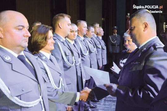 Tegoroczne Święto Policji w Zawierciu odbyło się w czwartek 5 lipca w Miejskim Ośrodku Kultury „Centrum”. W tym roku przypada 99 rocznica powołania Policji Państwowej. Zastępca Komendanta Wojewódzkiej Policji insp. Piotr Kucia przekazał 73 funkcjonariuszom z zawierciańskiej jednostki akty mianowania na wyższe stopnie policyjne. Następnie insp. Ryszard Skowroński zdał stanowisko Komendanta Powiatowego. Jego dotychczasowe obowiązki przejął czasowo podinsp. Arkadiusz Miśta.