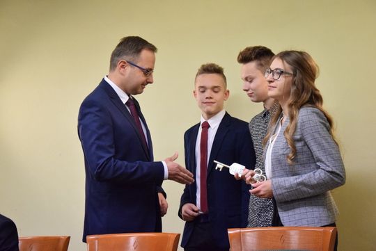 - Chciałbym gorąco podziękować za wybór, którego państwo dokonali. Chciałbym obiecać i obiecuję państwu, że będę pracować na państwa rzecz z całych sił i przede wszystkim wykorzystywał wszelkie szanse z możliwych dla państwa dobra. Chciałbym pogratulować moim kontrkandydatom, zarówno panu prezydentowi Witoldowi Grimowi, pani Beacie Chawule oraz panu Ryszardowi Machowi. Mam nadzieję na współpracę na rzecz mieszkańców i dobra naszego miasta ze wszystkimi radnymi, ze wszystkimi też kandydatami na prezydenta. Chciałbym, abyśmy razem budowali to miasto od nowa. Czeka nas wiele wyzwań, wiele zmian, na które jesteśmy przygotowani – mówił prezydent Łukasz Konarski. Byłym prezydentom, zasiadającym w zawierciańskiej radzie – Witoldowi Grimowi i Ryszardowi Machowi – nowy prezydent podziękował za wkład, który wnieśli w budowę Zawiercia. Zadeklarował również zacieśnienie współpracy z Młodzieżową Radą Miasta i zwiększenie jej wpływu na zarządzanie miastem, przekazując przedstawicielom MRM symboliczne klucze do miasta.
