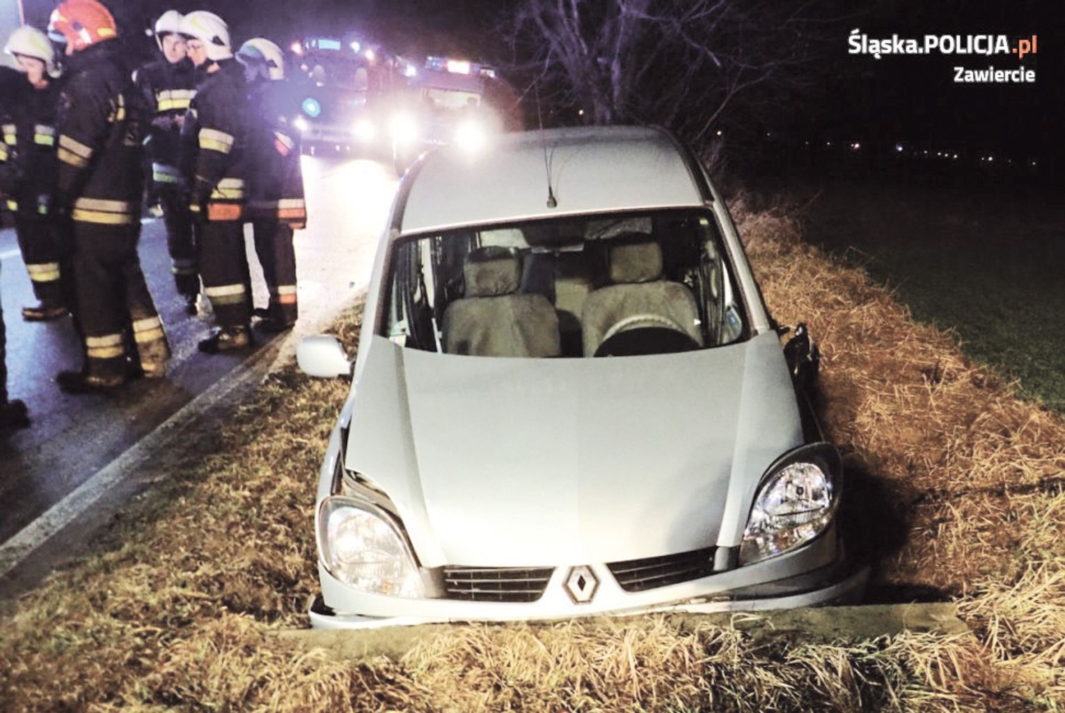 Wieczorem 1 stycznia w Kleszczowej (gm. Pilica) 62-latka siedząca za kierownicą Renault Kangoo na prostym odcinku drogi zjechała na przeciwny pas ruchu i dalej na pobocze, zatrzymując się na betonowym mostku. Jak się okazało, kobieta nie była trzeźwa – badanie wykazało ponad 1,5 promila. Strażacy uwolnili z samochodu ranną kobietę, która trafiła do szpitala.