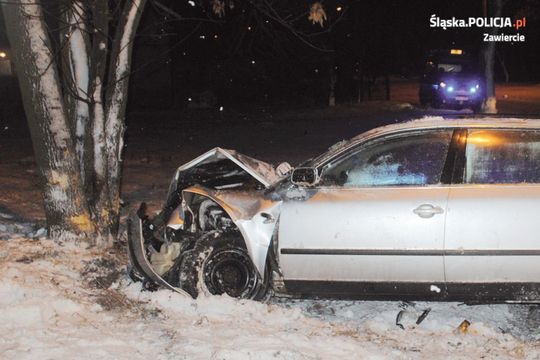 W czwartkowe popołudnie, 3 stycznia w Porębie pijany kierowca Volkswagena Passata rozbił samochód na drzewie. Wcześniej uszkodził znak drogowy i słup ulicznej latarni.