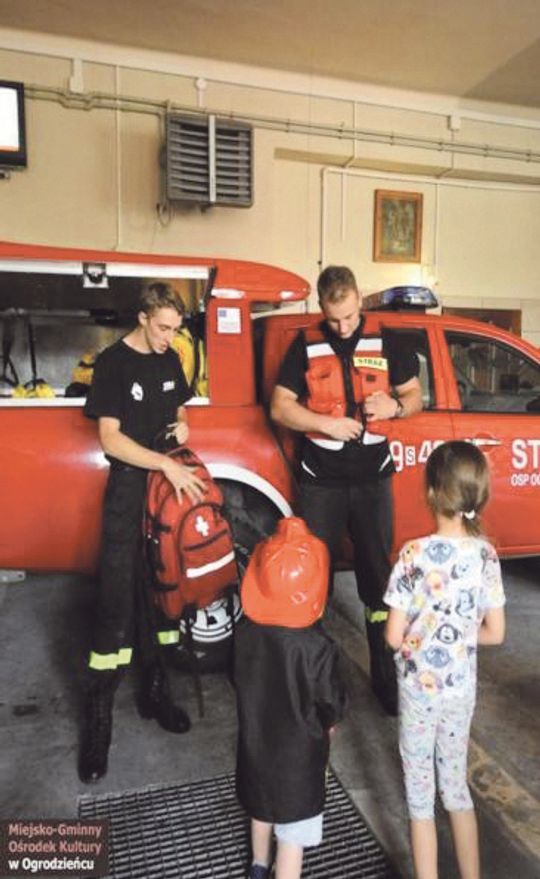 (Ogrodzieniec) W czwartek 18 lipca przy ogrodzienieckiej remizie w ramach akcji Wakacje z Kulturą odbyło się spotkanie pod nazwą To właśnie oni czuwają nad Twoim bezpieczeństwem z udziałem dzieci oraz strażaków OSP Ogrodzieniec.