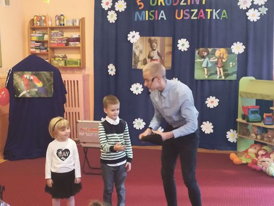 (Zawiercie) Pod koniec listopada w Przedszkolu nr 2 im. Misia Uszatka w Zawierciu świętowano piątą rocznicę nadania imienia placówce. Z okazji 5. urodzin Misia Uszatka dzieci z kilku grup przygotowały wspaniałe przedstawienie teatralne, które bardzo się spodobało publiczności. Przedszkolaki odwiedził wyjątkowy gość – iluzjonista zaprezentował dzieciom porywający pokaz. Ochotnicy, którym nie brakowało odwagi, pomagali iluzjoniście. Wszystkie przedszkolaki otrzymały również słodki upominek z okazji urodzin Misia Uszatka.