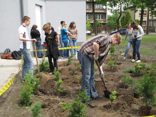 -Aby uzyskać dofinansowanie musieliśmy napisać projekt zagospodarowania, złożyć wniosek oraz charakterystykę roślin. Już od grudnia zaczęliśmy gromadzić potrzebne dokumenty i na początku kwietnia przyznano nam środki w wysokości ok. 2 tys. 500 zł, za które zakupiliśmy sadzonki od szkółki drzew i krzewów ozdobnych „Magnolia” z Zawiercia. Dwa tygodnie temu sadziliśmy już część drzewek, a dziś obsadzimy dziedziniec szkoły. W akcji bierze udział ok. 45 uczniów z Koła Ekologicznego przy II LO im. Heleny Malczewskiej. Na sadzeniu jednak nie kończy się ich praca, od tej pory członkowie koła będą musieli opiekować się tymi roślinami, podlewać je, obcinać, czy rozsadzać – podkreślała koordynująca akcję Magdalena Pohl nauczycielka biologii i chemii.