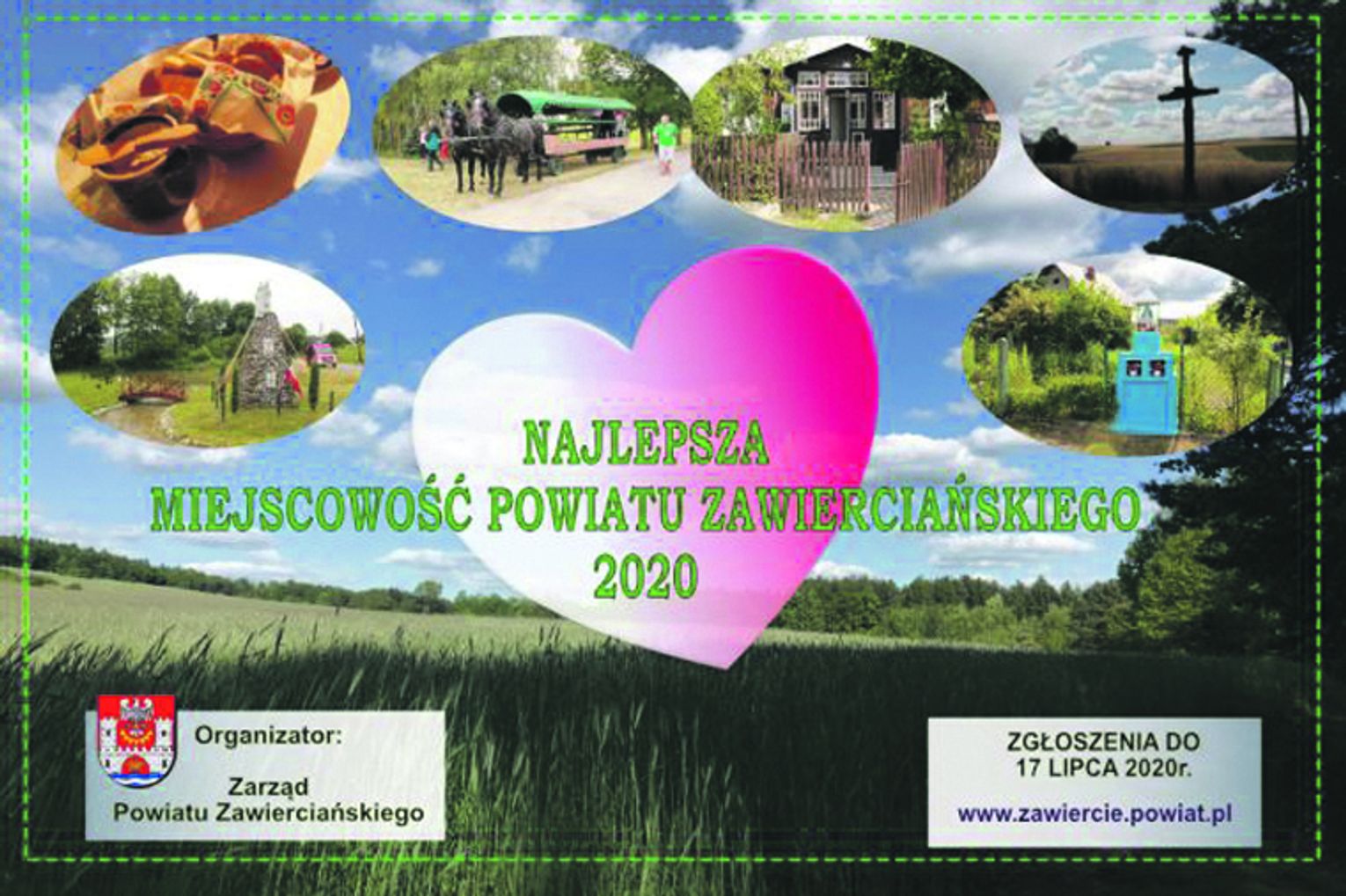 (Powiat Zawierciański) Ruszyły zgłoszenia do tegorocznej edycji powiatowego konkursu „Najlepsza miejscowość Powiatu Zawierciańskiego 2020”. Głównym celem konkursu organizowanego przez Zarząd Powiatu jest poznanie walorów miejscowości powiatu zawierciańskiego, w tym środowiska przyrodniczego, kulturowego i gospodarczego, poznanie lokalnych inicjatyw i zaangażowania mieszkańców w rozwój miejscowości. Zgłoszenia można nadsyłać do 17 lipca. Miejscowość może zgłosić do konkursu prezydent, burmistrz, wójt, sołtysi lub przewodniczący zarządy osiedla. Zgłoszenie musi zawierać materiał dokumentujący miejscowość.