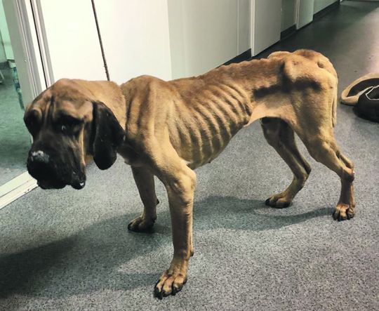 Trzy Dogi Kanaryjskie i suczka Bulterierka zostały odebrane z hodowli w Myszkowie-Będuszu. Posesja była opuszczona, słychać było tylko ujadanie psów. To co zobaczyli działacze fundacji w środku, przeraziło ich. Psy zamknięte w kojcach jak oceniają, były głodzone od dwóch, może trzech miesięcy.