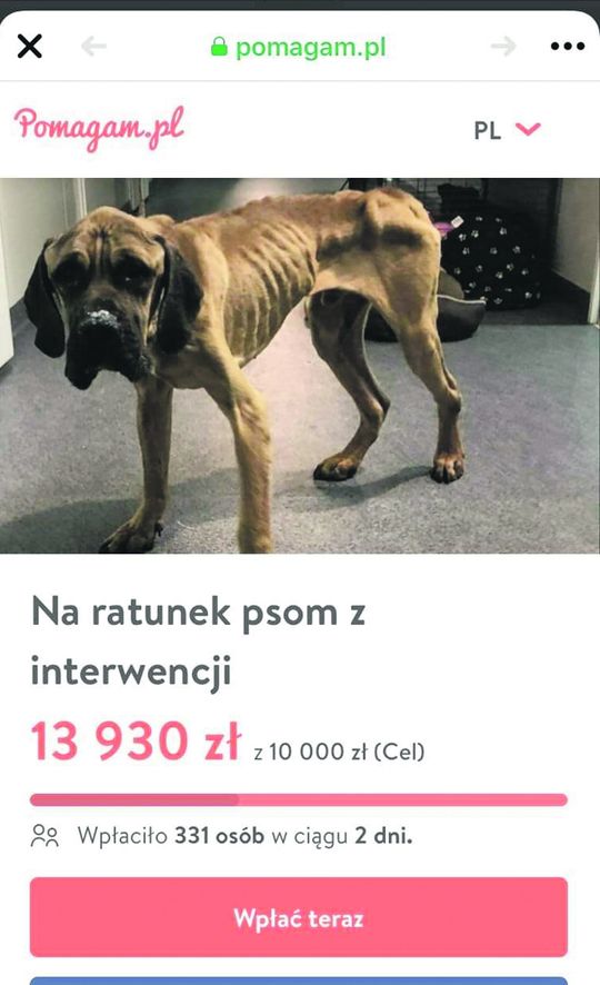 W piątek 14 sierpnia w godzinach wieczornych działacze Fundacji „Do serca przytul psa” i pracownicy Schroniska dla zwierząt w Zawierciu zabrali 4 psy z hodowli na Będuszu, w przeszłości uchodzącej za renomowaną. Psy -jak się okazało na miejscu- porzucone przez właścicielkę, były w tak okropnym stanie, że zdecydowanie można powiedzieć, że były na granicy śmierci głodowej. O wyjących psach, o tym, że w hodowli przy ul. Czarnieckiego dzieje się coś niedobrego, schronisko powiadomili sąsiedzi. Gdy nie mając pewności, co zastaną na miejscu, pracownicy schroniska i fundacji poprosili o asystę Policji, gdzie dzwonili 4 razy, albo byli zbywani „brakiem patrolu”, albo… nikt nie odbierał połączenia. Pracownicy schroniska ostatecznie zdecydowali się wejść na posesję sami, to co zastali w „boksach” gdzie trzymane były psy, przeraziło ich, choć widzieli już różne przypadki zaniedbywania zwierząt. Wielkie Dogi Kanaryjskie, jedne z największych, silne psy, mogące ważyć nawet 75 kg jak później zważono, miały wagę po 20 kg. Wyglądały jak kościotrupy obleczone w skórę! Na leczenie psów, które zostały odebrane w stanie skrajnego wyczerpania, na pomagam.pl w 2 dni zebrano ponad 13 tysięcy, choć celem zbiórki była kwota 10 tys. zł.