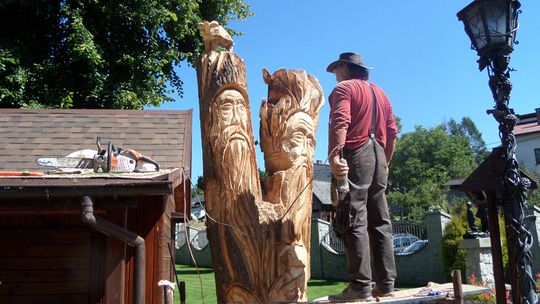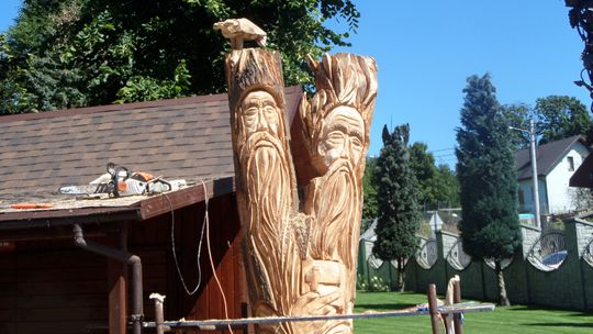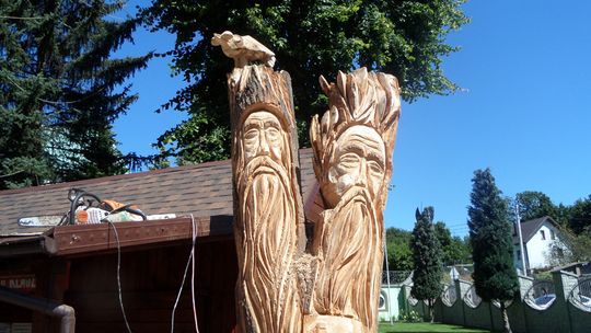 Rzeźba powstała w pniu lipy. Drzewo, rosnące przy pawilonie, w którym są sprzedawane dewocjonalia, zostało radykalnie przycięte, a właściwie ucięte. Z tyłu, płaskorzeźby, jak zaplanował rzeźbiarz, będą wyrastały gałęzie. Mieliśmy okazję zobaczyć Sebastiana Żurawskiego przy tworzeniu dzieła.