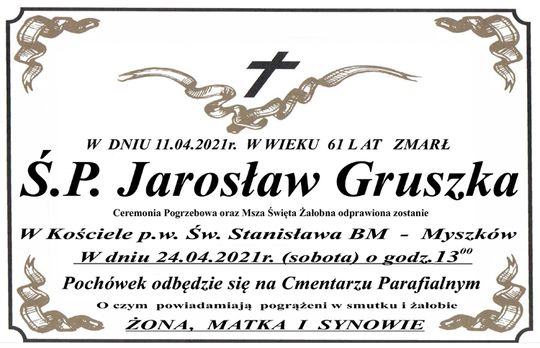 Z głębokim żalem, gdyż znaliśmy się od dziesiątek lat, informuję w tym tekście o śmierci Jarosława Gruszki, biznesmena, który miał jeszcze wiele planów, ale przede wszystkim wspaniałego, dobrego człowieka, z którym -gdy już udało nam się spotkać- długo nie mogliśmy skończyć rozmowy, nigdy nie brakowało nam tematów.