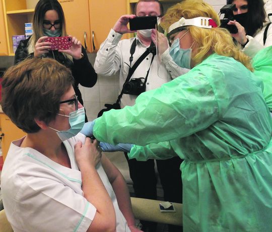 Jak wyjaśnia Agata Kalafarska-Winkler, (na zdjęciu razem kierownikiem OIOM Jackiem Pańczykiem) specjalista ds. zarządzania informacją dot. Covid-19 w Szpitalu Powiatowym w Zawierciu, szpital ma 774 pracowników, z czego 502 osoby to personel medyczny. Stopniowo szczepieni będą wszyscy chętni pracownicy szpitala, czyli oprócz pielęgniarek, lekarzy, również technicy labolatoryjni, salowe, obsługa techniczna, a na koniec pracownicy biurowi: -W pierwszej kolejności zależało nam, aby zaszczepili się pracownicy oddziałów zakaźnego, OIOM-u.