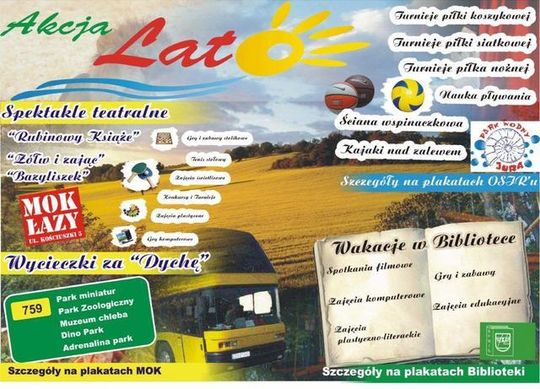 W akcję jest zaangażowany Park Wodny „Jura”, Miejski Ośrodek Kultury w Łazach oraz Biblioteka Publiczna.