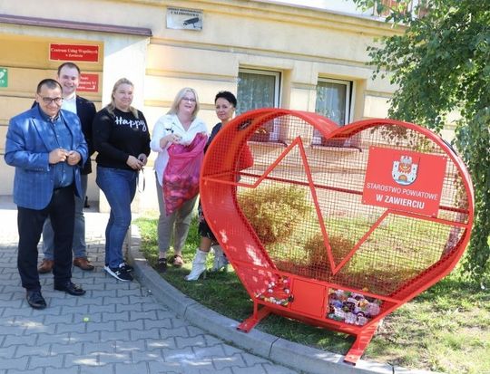 „Serce na nakrętki” ufundowane zostało przez Powiat Zawierciański. W ostatnim czasie umieszczono jest przy ZS im. M. Grzegorzewskiej w Zawierciu. - Szkoła ta od lat angażuje uczniów w różnego rodzaju akcje charytatywne, w tym wakacje zbierania nakrętek na cele rehabilitacji potrzebujących dzieci. Symbolicznego wrzucenia pierwszej nakrętki dokonał Starosta Zawierciański Gabriel Dors – informuje Starostwo Powiatowe.