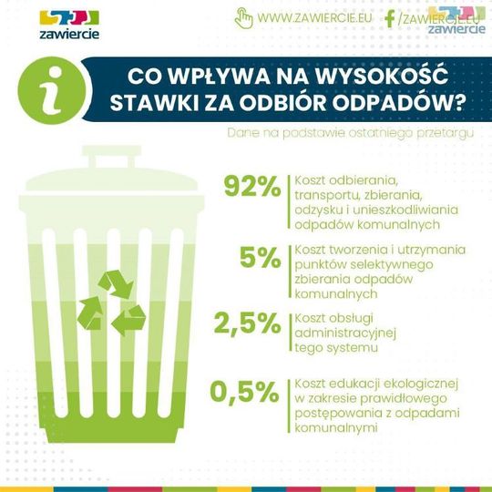 Zgodnie z projektem uchwały zaproponowanym przez prezydenta Łukasza Konarskiego, mieszkańcy płaciliby za odpady komunalne 36 miesięcznie od osoby (jest to stawka za odpady segregowane; niesegregowane kosztowałyby 72 zł). Obecnie obowiązująca stawka uchwalona została na początku grudnia 2019 roku i obowiązuje od 1 lutego 2020 r. Teraz zawiercianie płacą za odpady komunalne 19,50 zł miesięcznie od osoby (odpady segregowane) lub 58,50 zł (odpady niesegregowane). Zgodnie z propozycją prezydenta Konarskiego opłata za odpady segregowane wzrosłaby o 84%.