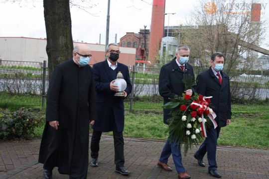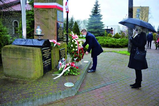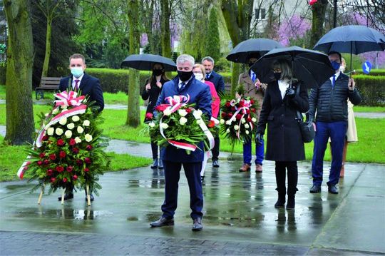 Władze Powiatu Myszkowskiego reprezentowali Starosta Piotr Kołodziejczyk oraz Sekretarz Powiatu Krystyna Jasińska. W tym samym czasie kwiaty złożyli Poseł Mariusz Trepka oraz reprezentanci Forum Młodzieży z Wiceprzewodniczącym Rady Powiatu Januszem Romaniukiem, który jest ich opiekunem. W obchodach uczestniczyli również przedstawiciele biura powiatowego ARiMR w Myszkowie.