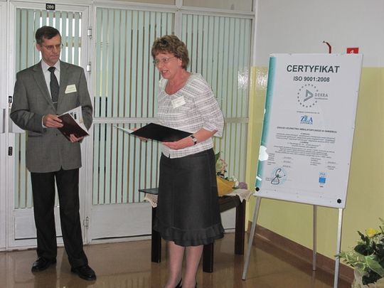 - Mili goście, spełnienie wymogów normy ISO jest ukoronowaniem wieloletniego procesu dostosowania zakładu do wymogów rynkowych. Osiągnęliśmy, to dzięki bolesnemu procesowi restrukturyzacji, kształceniu kadr, unowocześnianiu wyposażenia. W wyniku tego procesu powstał zakład zatrudniający zespół dobrych pracowników rozumiejących istotę współczesnego rynku usług medycznych. Serdecznie dziękujemy naszym dobrym duchom i przyjaciołom, którzy wspierali nas w tym ogromnym przedsięwzięciu – mówiła podczas odbioru certyfikatu dyrektor placówki Teresa Dorenda.