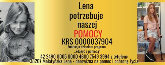 Będziemy informować o formach zbiórki pieniędzy na leczenie Leny Malatyńskiej również na naszych portalach: kurierzawiercianski.pl oraz gazetamyszkowska.pl
