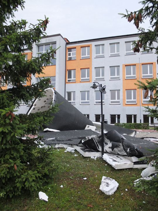 - Teraz dostaliśmy informację o tym, iż jest 90 tysięcy z ubezpieczalni na pokrycie strat związanych i z dachem, i z zalaniem poszczególnych kondygnacji, więc na pewno z tych środków te prace będą realizowane. Dodatkowo przygotowujemy wniosek do części oświatowej subwencji ogólnej rezerwy tej części na 183 tysiące, tak jak mamy opracowany, na to, aby go złożyć o ewentualne wsparcie i dofinansowanie, bo taki wniosek możemy złożyć na usunięcie tych usterek, które się pojawiły jeżeli chodzi o dach i jeżeli chodzi o sprawy związane z zalaniem tych poszczególnych kondygnacji budynku. Niemniej jednak ten dach, który został zerwany, został już wykonany. Mamy kolejny kosztorys na to, aby przykryć w całości to membraną dachową, aby w tym miejscu łączenia nie pojawiła się woda i abyśmy mogli już tak dokładnie zabezpieczyć ten budynek – mówił starosta Piotr Kołodziejczyk podczas sesji 30 września.