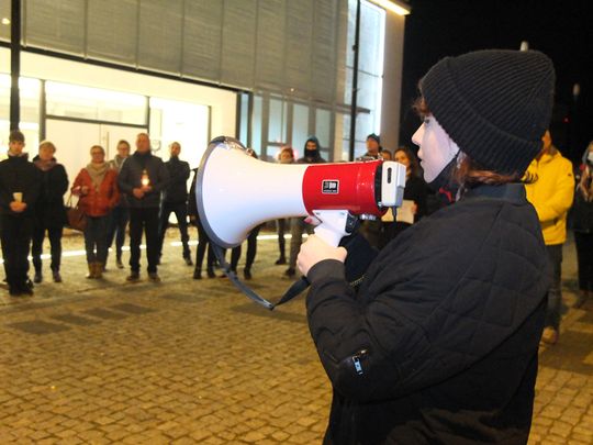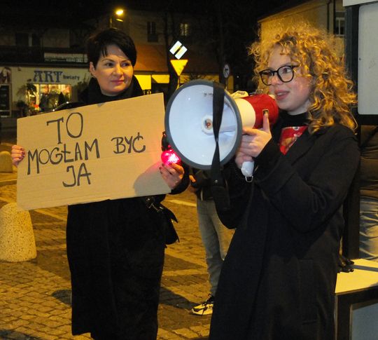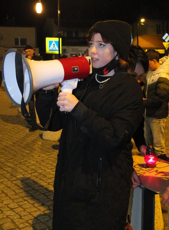 Na zakończenie Marszu Milczenia przed MDK przemówiły kobiety i dziewczyny: Justyna Nowakowska -organizatorka, Monika Pniakowska-Syska -nauczycielka w LO im. mjr. H. Sucharskiego, działaczka Lewicy. Ale co ważne, przemówiły też młode dziewczyny: