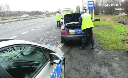 Policjanci zauważyli samochód na DK 91 w Siedlcu Dużym. Patrol zatrzymał pojazd do kontroli. Jak się okazało, podróżowali nim dwa Gruzini w wieku 24 i 28 lat. W bagażniku Hondy mundurowi znaleźli zbiorniki z benzyną i olejem napędowym, które pochodziło z wcześniejszych kradzieży.