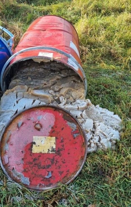 Na prywatną, nieogrodzoną działkę podrzucono 10 metalowych beczek, każda o pojemności 200 litrów. Z jednego z przewróconych pojemników wydostała się substancja, która wyglądała jak smar techniczny. Na zdjęciach wykonanych przez radną Ewę Masłoń, które publikowane były przez Urząd Gminy Poraj widać, że na niektórych beczkach znajdują się oryginalne naklejki producentów informujące o ich pierwotnej zawartości, jaką były środki smarne (np. Ceplattyn KG 10 HMF - 2500 marki Fuchs, czy też Liten EP-2 z Orlen Oil).