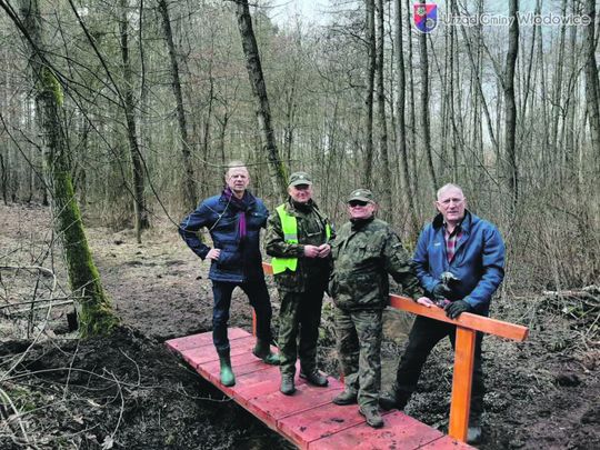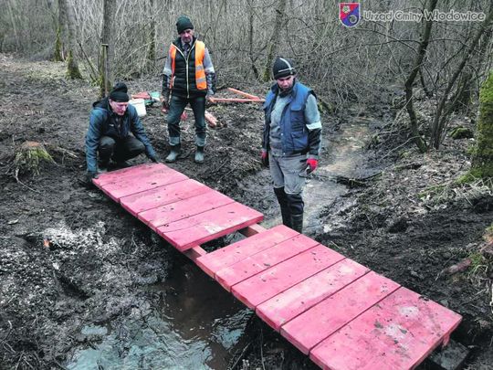 - W ideę budowy ścieżki mocno zaangażował się Sołtys Sołectwa Kopaniny - Skałka Wojciech Kazanecki, który z własnego materiału, w swoim warsztacie wykonał solidne mostki. Oczywiście bardzo aktywnie brał udział przy ich montażu w terenie. W pracach wtórowali mu wójt gminy Adam Szmukier oraz radny Zbigniew Zając, który z ramienia Nadleśnictwa wytyczył ścieżkę i nadzorował roboty – informuje Urząd Gminy we Włodowicach. (es) Foto: UG Włodowice