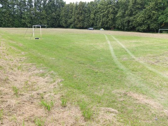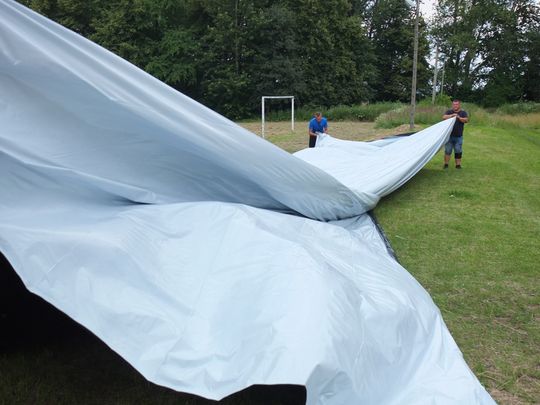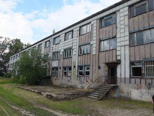Zajrzeliśmy jak idą przygotowania do zlotu. Trawa na boisku wykoszona, będzie gdzie ustawić namioty. Nie ma w tym roku możliwości nocowania w niszczejącym internacie ZS2. Budynek jest już w tak złym stanie, że członkowie klubu nie próbowali już w nim reanimować "pokoi", czy wody. Byliśmy przy tym jak podejmowali próbę, na oko skazaną na niepowodzenie, zakrycia budynku folią. Nie czekaliśmy już na finał tej Misson Impossible, ale efekt zobaczymy jutro.