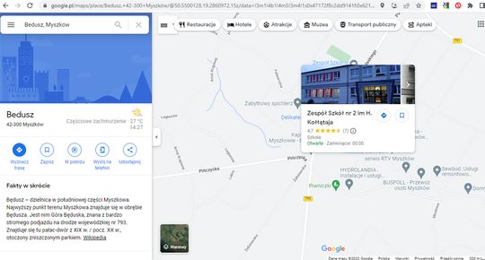 Wjazd na zlot przez szkołę, od Siewierza w lewo, od centrum Myszkowa odwrotnie.
