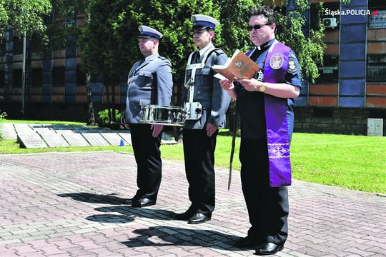 - Komendantowi Wojewódzkiemu Policji w Katowicach insp. Romanowi Rabsztynowi i Prezes Ogólnopolskiego Stowarzyszenia Rodzina Policyjna 1939 r. Teresie Brackiej asystowali w tym policjanci z posterunku honorowego – informuje Śląska Policja.