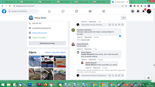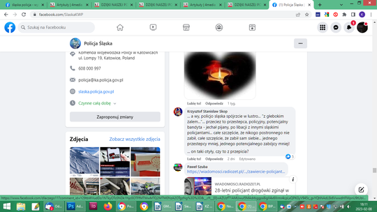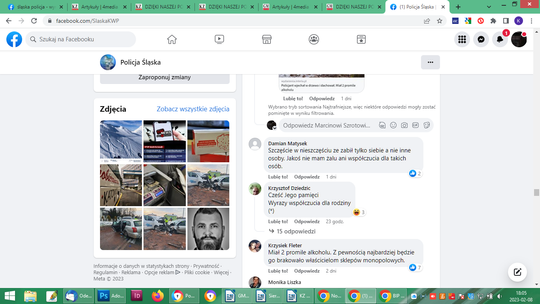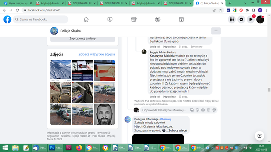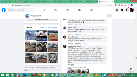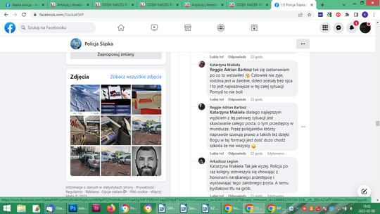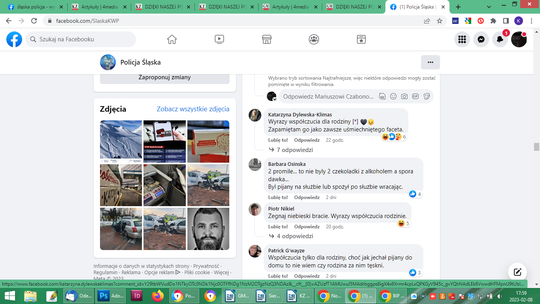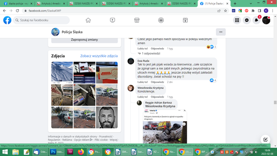 Po potwierdzeniu informacji, że funkcjonariusz był nietrzeźwy, po prostu pijany, również pod zbiórką ktoś na pisał, wpłacając 10 złoty: „na flaszkę”. Łącznie 429 osób wpłaciło 18580 zł i zbiórka wyraźnie stanęła. Na innych forach sporo komentarzy o hipokryzji Policji, jako formacji. Osobie wobec której zachodzi podejrzenie, że jest sprawcą wypadku ze skutkiem śmiertelnym w stanie nietrzeźwości, urządzono pogrzeb z honorami. Policyjna orkiestra, kompania honorowa, sztandary. Na profilu Śląska Policja po pogrzebie pojawiły się niepochlebne komentarze: