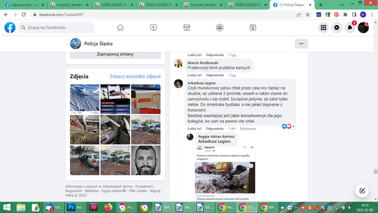 „Zginął na własne życzenie. Całe szczęście tylko On. Wyrazy współczucia dla rodziny. Ale policjant!!! Po alkoholu po służbie wracał domu”