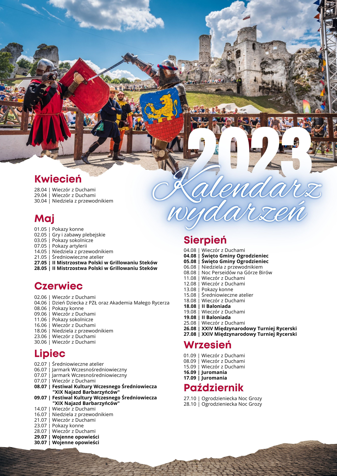 Każdy, kto w dzieciństwie pragnął zostać rycerzem, będzie mógł spełnić swoje marzenie. Dodatkowo zostaną uruchomione stanowiska animacyjne dla każdej grupy wiekowej. Nie zabraknie strzelania z kuszy wałowej (za pomocą piłeczek wystrzelonych z repliki), gdzie uczestnicy będą