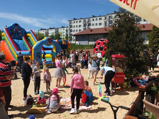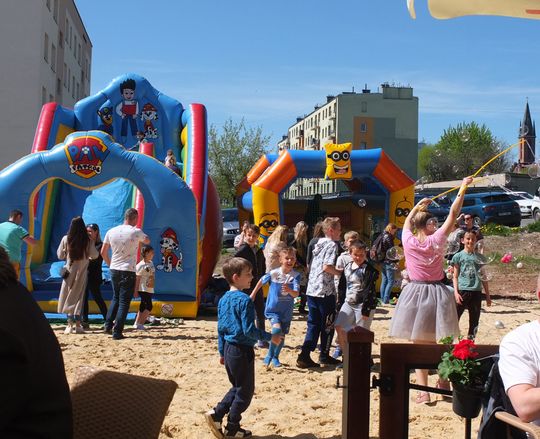Dużą atrakcją dla dzieci, zwłaszcza że pogoda piękna, był Piknik Europejski z dmuchańcami i innymi atrakcjami przy Pizzerii Capri na ul. Sikorskiego w Myszkowie. Organizowane przez myszkowską Lewicę uroczystości, były jedynymi tego dnia w Myszkowie atrakcjami, nie licząc pożaru w Saniko.