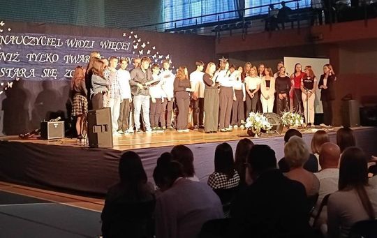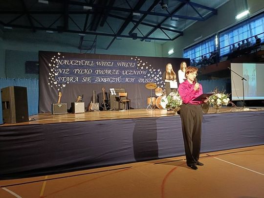 Uczniowie pod okiem nauczycieli przygotowali okolicznościowy program artystyczny. W ten sposób podziękowali za przekazywaną wiedzę. Gratulacje i życzenia sukcesów edukowania uczniów złożył Wicestarosta Mariusz Morawiec.
