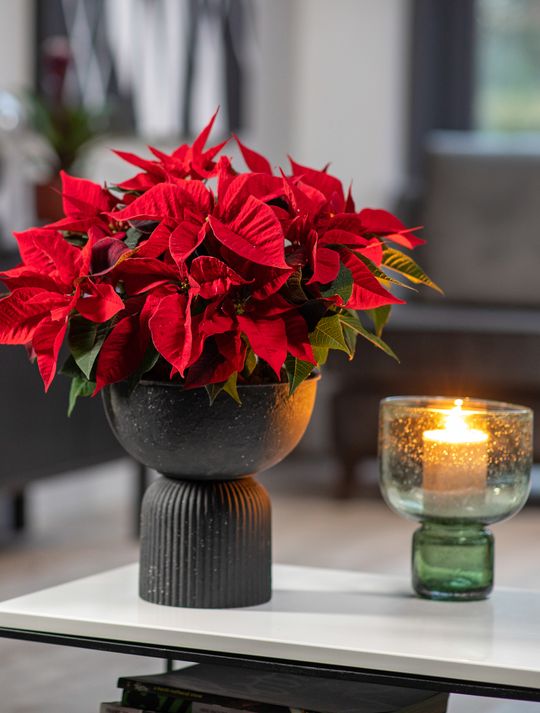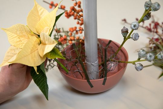Na koniec posadź w misie jedną lub kilka poinsecji, w zależności od rozmiaru.