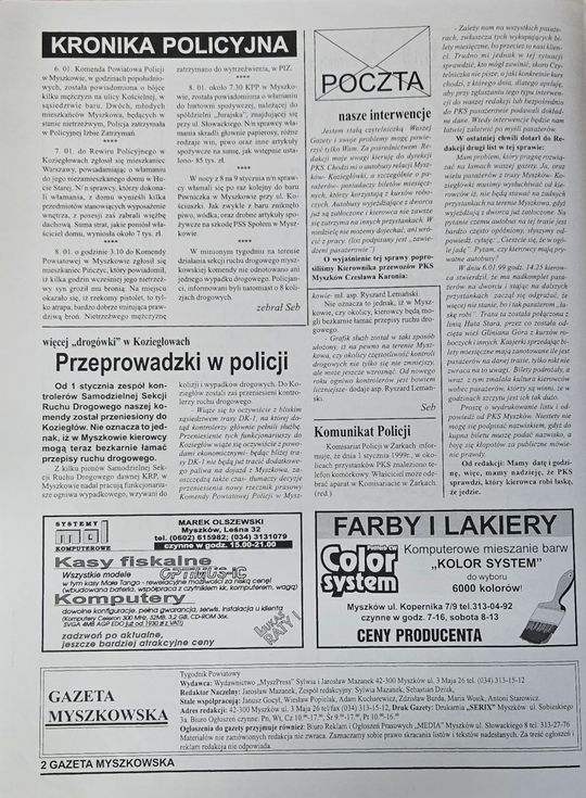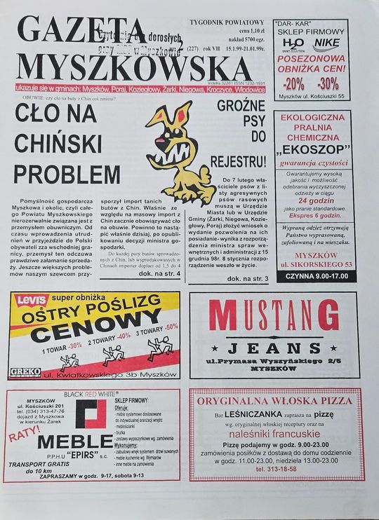 Lokalne wątki w tej książce są liczne, ale wskażemy na jeden. Autorka wykorzystała wydanie Gazety Myszkowskiej z 1999r, jej "Kronikę policyjną" jako ilustrację do wstępu. Tak w książce znalazło się wydanie Gazety Myszkowskiej, nr 2/99 z 15 stycznia 1999r. odnaleziona w Czytelni Biblioteki dla dorosłych przy MDK w Myszkowie co potwierdza pieczątka biblioteki.