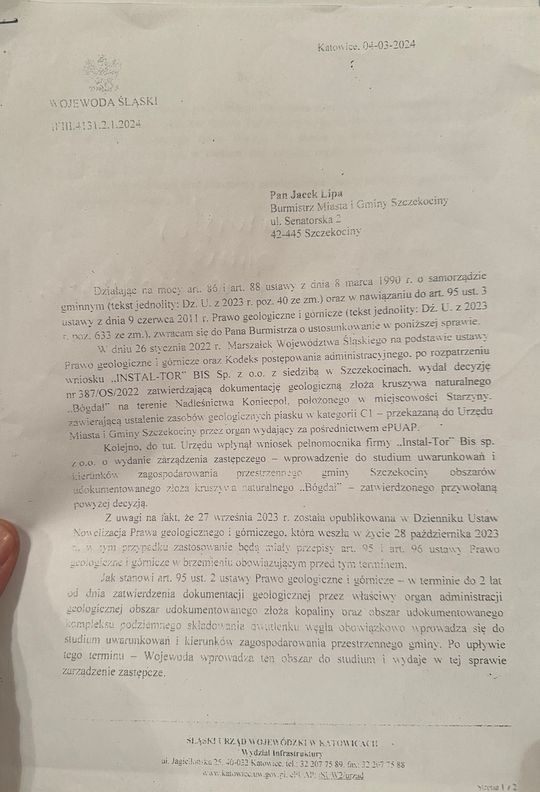Budowę kopalni już dwa razy blokowali radni gminy Szczekociny, nie godząc się na zmiany w Planie Zagospodarowania Przestrzennego. Kolejny raz do projektu podejdzie już pewnie nowa Rada Miasta i Gminy Szczekociny którą wybiorą mieszkańcy 7 kwietnia. W tym samym dniu również wybory burmistrza Szczekocin. Wychwalający PiS obecny burmistrz Jacek Lipa nie ma konkurenta. Nikt nie zdecydował się wziąć udziału w wyborach, więc teoretycznie Lipa ma „wygraną w kieszeni”. Niepewność czy zostanie ponownie burmistrzem Szczekocin polega tylko na tym, czy mieszkańcy mając do wyboru tylko jednego kandydata, zdecydują się go poprzeć, czy skreślić. Jeżeli Jacek Lipa nie dostanie połowy (+1głos) oddanych głosów, burmistrzem nie zostanie, a nowego burmistrza Szczekocin wyłonią radni w głosowaniu tajnym.