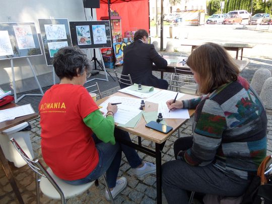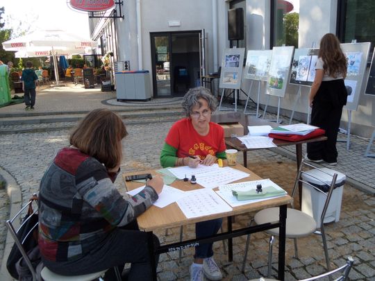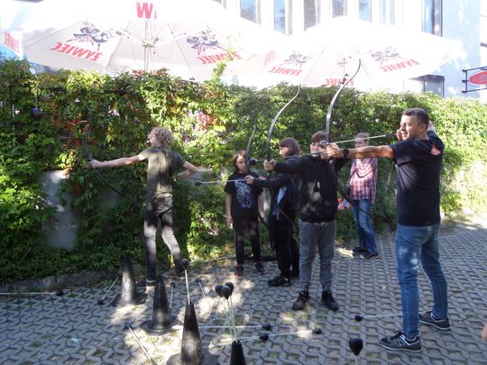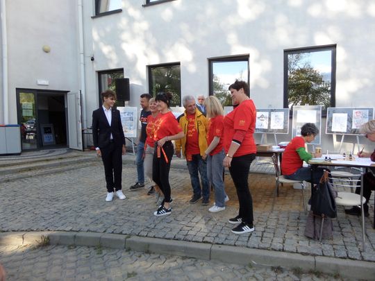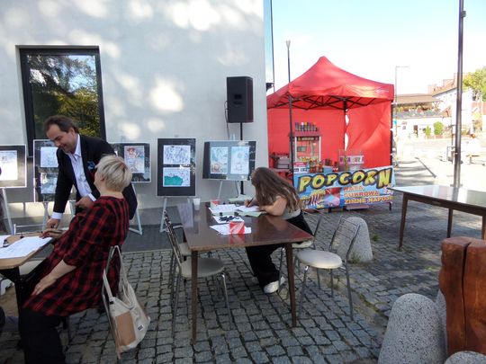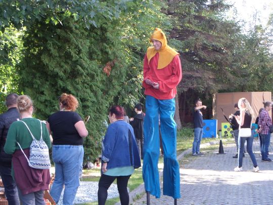 Wśród publiczności przechadzają się średniowi3eczni szczudlarze. O godz. 18. rozpocznie się spektakl teatru Gry i Ludzie " Opowieści Wagantów" - lalkowy teatr średniowieczny.