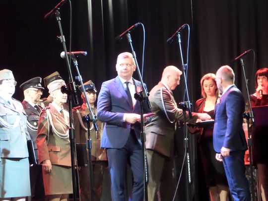 Przed rozpoczęciem koncertu Zespół Wojskowy Eskadra, działający przy Miejskim Domu Kultury w Myszkowie został odznaczony Medalem "Pro Patria".